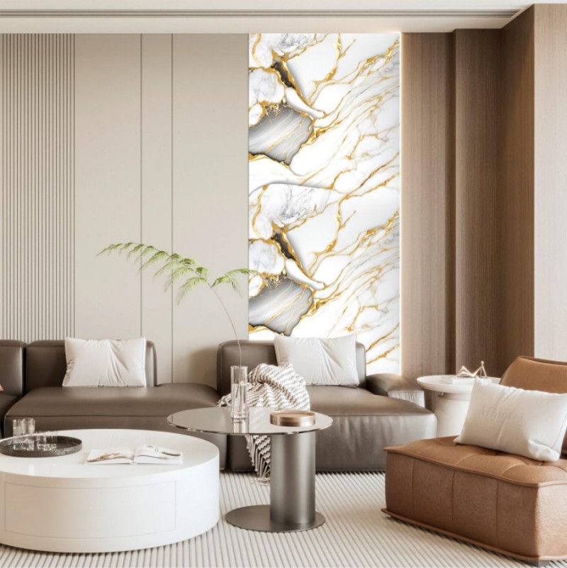 UV marble sheets are usually made from high-quality PVC materials and coated with a special anti-ultraviolet layer to prevent fading and deterioration caused by long-term exposure to ultraviolet rays. This coating ensures that the sheets retain their vibrant colors and textures over an extended period, even in high-traffic areas or environments with direct sunlight.